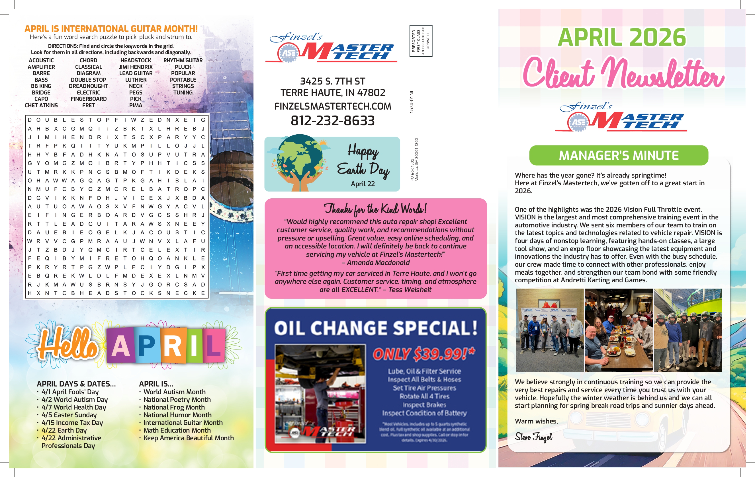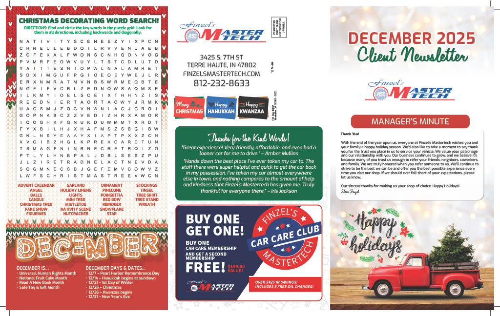 Finzel's Mastertech is committed to ensuring effective communication and digital accessibility to all users. We are continually improving the user experience for everyone, and apply the relevant accessibility standards to achieve these goals. We welcome your feedback. Please call Finzel's Mastertech (812) 232-8633 if you have any issues in accessing any area of our website.